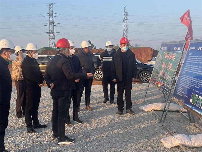秦勤一行深入施工現場,實地察看項目全線工程,聽取了項目負責人關于項目概況、建設進展、安全文明施工等方面的工作匯報。