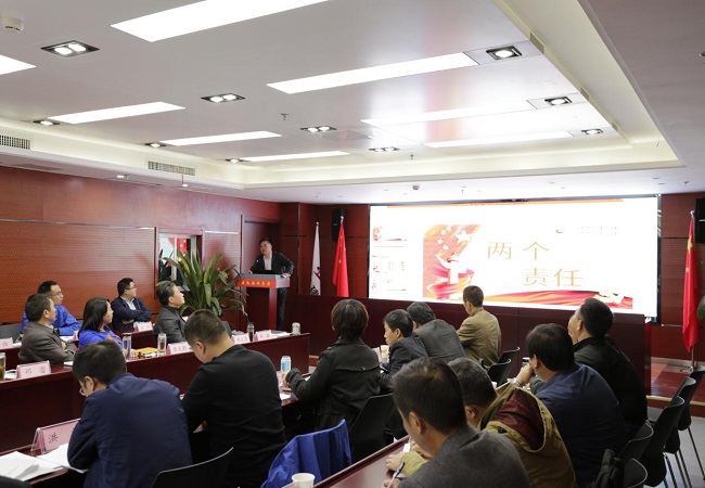 11月4日下午,在公司第四季度生產(chǎn)調(diào)度會暨安委會擴大會上,公司黨委委員、紀委書記、工會主席王勝利上了一堂“兩個責任”專題黨課。公司領導班子成員、機關各部門負責人、各子分公司負責人、項目經(jīng)理、項目財務、安全負責人等90余人參加了學習。