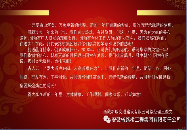 最后,王俊文總經理祝愿新的一年里路橋集團蒸蒸日上,西藏新瑞蓬勃發展!