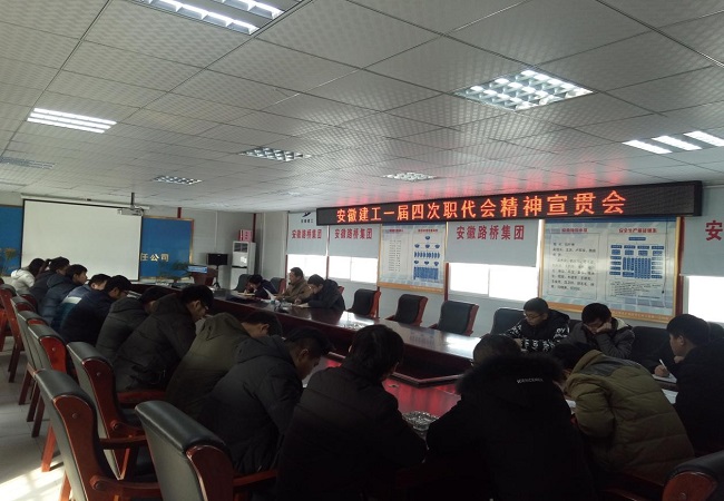 2月3日,安徽路橋集團第三分公司組織班子成員及合安項目部全體員工在合安高速01標項目部學習“安徽建工集團一屆四次職代會精神”,會議力求將職代會精神傳遞給分公司每一位員工。