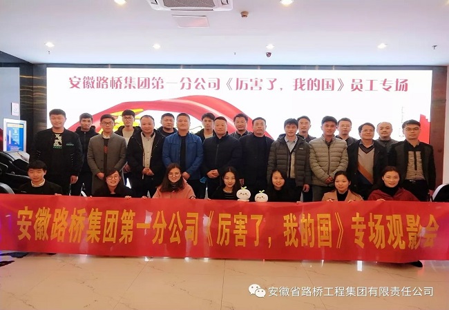 為深入貫徹落實黨的十九大精神,進一步弘揚愛國主義教育。3月18日,一分公司黨總支、工會組織開展了《厲害了,我的國》觀影活動。一分公司總經理李文兵、黨總支副書記、工會主席汪永奇及所屬各項目黨員、員工代表等共30人進行了集體觀影。