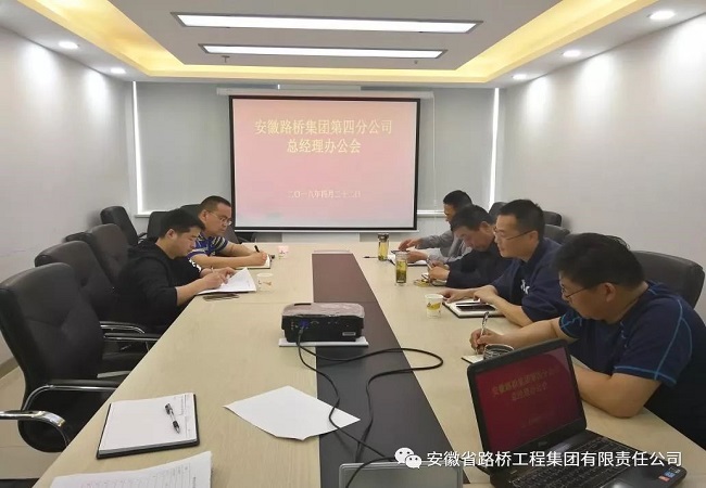 4月22日上午,四分公司總經理辦公會在企融國際大廈16樓第二會議室召開,會議由總經理洪杰主持,四分公司領導班子成員、機關相關部門負責人及G346項目負責人參加會議。