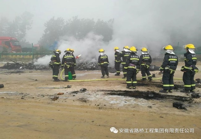 5月12日晚22點50分,合安高速往合肥方向1053+100路段有車輛著火,占據了超車道和行車道,導致往合肥方向交通雙向中斷。現場火勢很大,并伴有清晰的爆裂聲。形勢危急,合安項目部副經理李虎、安全部總監楊林第一時間趕到現場指揮救援,安全部以及拌合站工作人員也趕到現場,積極配合消防隊、交管隊進行火災搶險行動。經過一夜奮戰,大火最終被撲滅。7點26分,消防隊二次進場將余火撲滅后,合安項目部立即組織工作人員快速清理現場,保證了道路的通暢。
