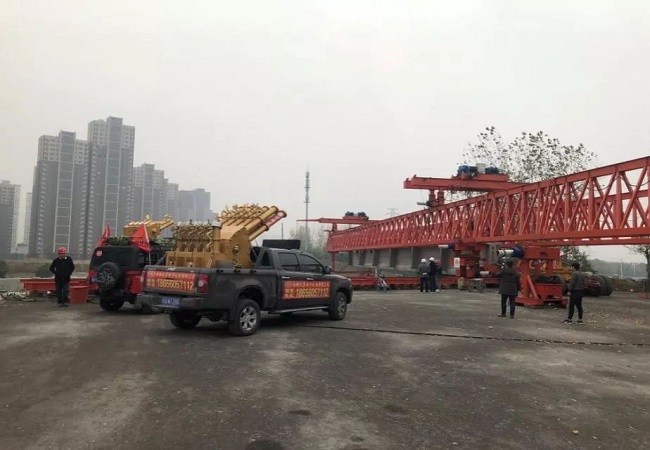 “落、落、落,左移一公分,落、落、落……好!成功了!”。11月21日,在現場負責人利索準確的指揮聲中,丙鋪路項目玉龍路大橋首片40米T梁平穩、安全、準確地安裝在支座上,成功架設。