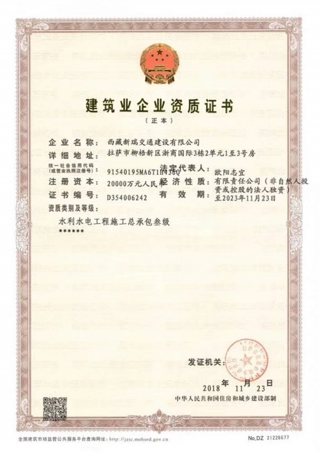 此次水利資質的取得為公司在西藏地區經營業務的拓展提供了必要的保障,也為新瑞公司的長遠發展奠定了堅實的基礎。