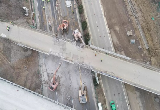 隨著天橋半幅路面清理工作的完成,歷時近三個月的合安高速改擴建01標天橋建新拆舊工程劃上了圓滿的句號,春節前上跨合安高速交通正式轉換至新建天橋,涉路高速恢復正常通行。