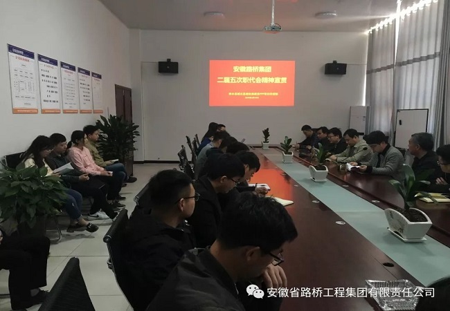 一分公司機關及所屬各項目重點學習了公司黨委書記、董事長盛明宏《不忘初心 砥礪奮進 全力推動安徽路橋集團邁向新征程》的講話精神與公司總經理歐陽志宜所做的題為《堅定信心謀發展 繼往開來譜新篇 為建成安徽省一流交通建設企業而努力奮斗》的工作報告。