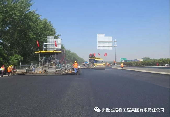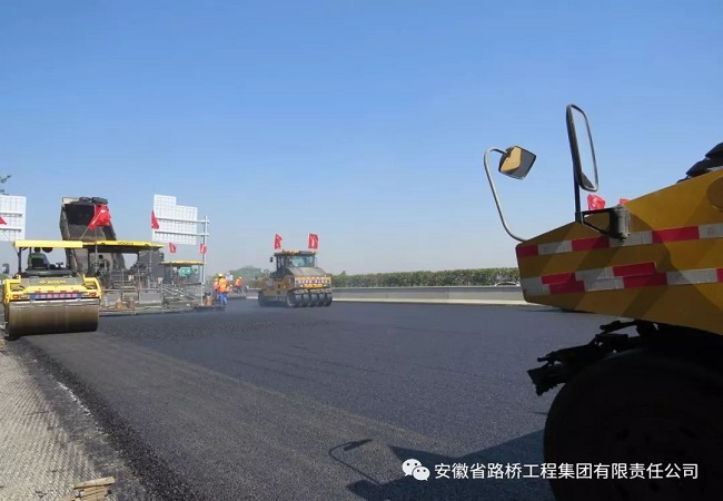 5月23日,蕪合高速改擴建三標(biāo)在K94-K95段進行左幅老路瀝青中面層攤鋪工作。烈日當(dāng)空,驕陽四射,施工現(xiàn)場一派緊張有序的場面:一輛輛重型卡車滿載瀝青混合料排隊等候,攤鋪機緩慢平穩(wěn)前行,工人們緊跟攤鋪機,平整瀝青混合料,壓路機來回有序碾壓路面。機器的轟鳴聲和鐵鍬叮咚聲交相輝映,宛如聲勢壯闊的合唱。