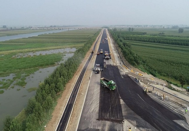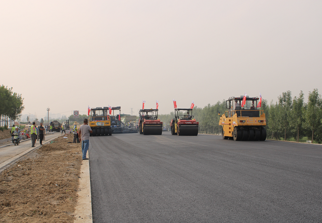 截止8月21日,濱河路機動車道瀝青下面層施工全部完成、右側人非混行車道瀝青下面層及上面層施工全部完成。