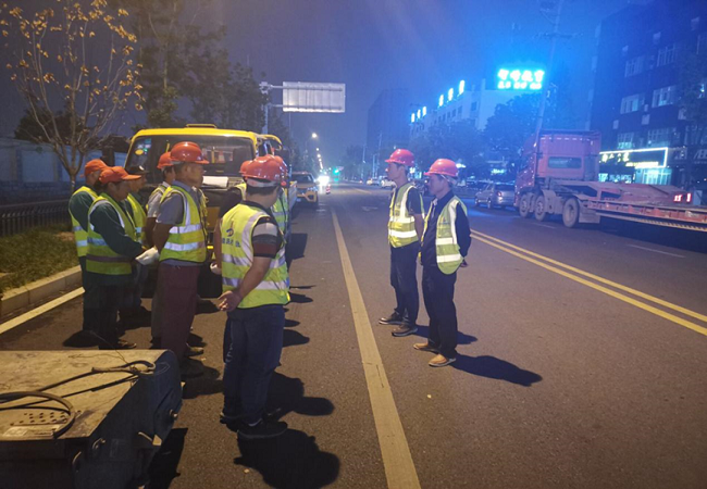 9月26日晚,月臺路項目南區市政道路維修工程施工現場燈火通明,一片繁忙景象。為減少施工對交通的影響,錯開交通高峰期,項目部員工開啟夜間工作模式,最大限度保障市民安全便捷出行。