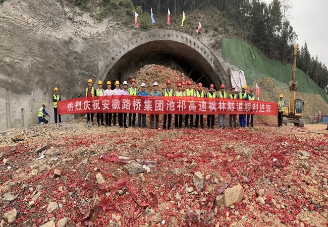 10月12日上午,池祁11標楓林隧道施工現場彩旗招展,大型機械整裝待發,全體工作人員精神振奮,在震耳的機械轟鳴聲和施工人員的歡呼聲中,楓林隧道順利實現進洞施工。