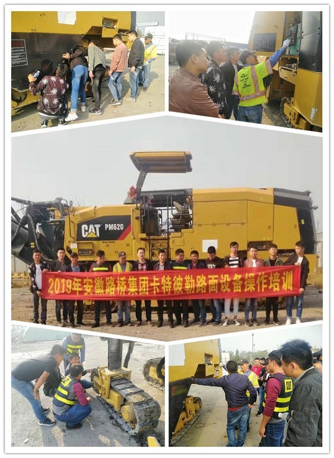 本次培訓由卡特彼勒的管理工程師負責講解授課。培訓會分為兩個部分:一是室內培訓會,工程師重點講解銑刨機概況及性能特點、操作安全及維護安全等相關注意事項、機械操作控制及技巧等;二是室外培訓會,工程師帶領學員們在合安項目深入學習PM620銑刨機上機實操。
