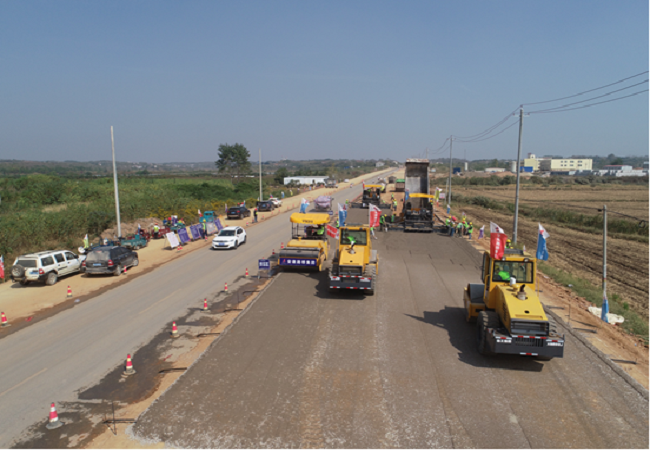 10月24日上午11:08分,G347安九二期望江至宿松段一級公路PPP項目K3+200-K3+400左幅水穩(wěn)底基層試驗段正式啟動。
