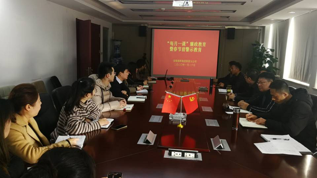 春節(jié)將近,為確保節(jié)日期間風(fēng)清氣正,1月20日,四分公司開(kāi)展“每月一課”廉政教育暨春節(jié)前警示教育學(xué)習(xí)會(huì)。會(huì)議由黨總支書(shū)記朱大俊主持,四分公司機(jī)關(guān)全體員工參加會(huì)議。