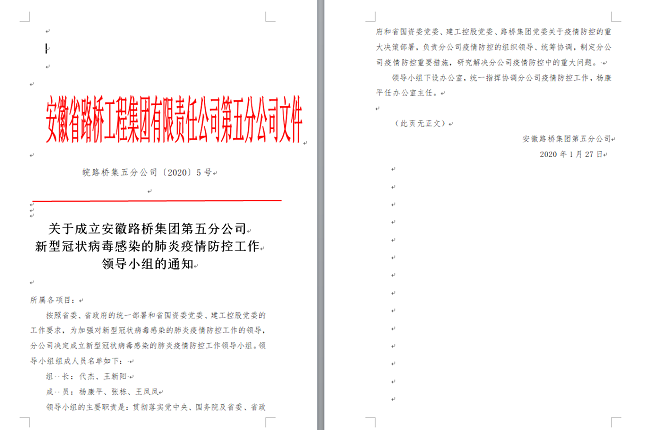 自新型冠狀病毒肺炎疫情發(fā)生以來(lái),在公司黨委的正確帶領(lǐng)下,路橋集團(tuán)第五分公司嚴(yán)格實(shí)施疫情防治各項(xiàng)措施,自發(fā)捐款支援武漢疫情防治的同時(shí)認(rèn)真做好節(jié)后復(fù)工疫情防控安排并制定工作方案。