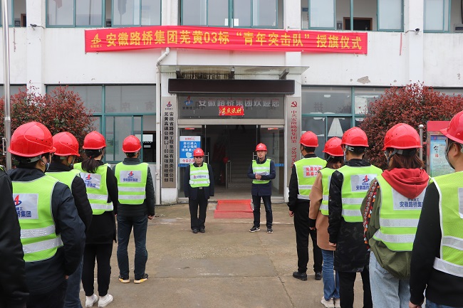 3月27日,蕪黃03標項目部舉辦青年突擊隊授旗儀式,二分公司黨總支書記、副總經(jīng)理、工會主席劉峰參加儀式。