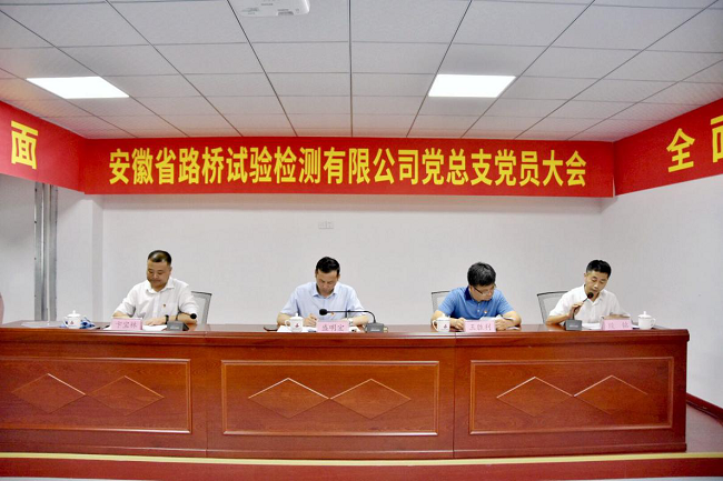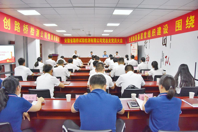 2020年6月22日,安徽省路橋試驗檢測有限公司黨總支首次黨員大會在合肥召開。檢測公司黨總支全體黨員參加會議,路橋集團黨委書記、董事長盛明宏,黨委委員、紀委書記王勝利到會指導并講話。