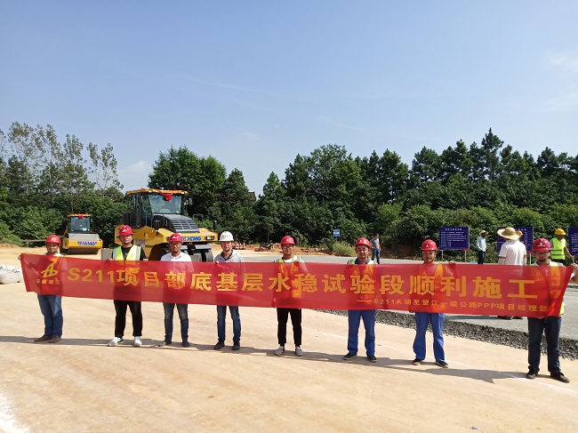 9月5號,S211PPP項目施工現場喜訊連連。上午11點,一工區K4+260-k5+000路基96頂進行了交工驗收,宣告著項目路基工程施工已基本成型。下午13點,伴隨著隆隆的機械轟鳴聲,施工現場再傳捷報,K4+260-k5+000路段底基層水穩試驗段順利施工。