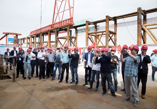 20日下午2:00,與會(huì)專家學(xué)者及代表一行乘車前往安徽路橋集團(tuán)合安改擴(kuò)建01標(biāo)中派河大橋施工現(xiàn)場(chǎng)觀摩。公司領(lǐng)導(dǎo)班子、工程管理部、總師室、設(shè)計(jì)院、合安改擴(kuò)建01標(biāo)項(xiàng)目接待了觀摩團(tuán)一行。項(xiàng)目負(fù)責(zé)人向觀摩團(tuán)詳細(xì)介紹了中派河大橋設(shè)計(jì)理念、施工重難點(diǎn)、施工工藝、科技創(chuàng)新、安全質(zhì)量管理等內(nèi)容。觀摩團(tuán)在參觀完施工現(xiàn)場(chǎng)后,對(duì)于中派河大橋的施工及我公司管理水平給予高度評(píng)價(jià)。