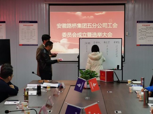 會(huì)議宣讀了《關(guān)于成立安徽省路橋工程集團(tuán)有限責(zé)任公司第五分公司和設(shè)備租賃分公司工會(huì)委員會(huì)的通知》、《關(guān)于黃培松同志工作職務(wù)的建議》和《關(guān)于安徽路橋集團(tuán)五分公司工會(huì)委員會(huì)委員候選人預(yù)備人選的批復(fù)》。在詳細(xì)了解4位候選人基本情況后,通過(guò)無(wú)記名差額選舉的方式選舉產(chǎn)生安徽路橋集團(tuán)五分公司第一屆工會(huì)委員會(huì)的3名委員。