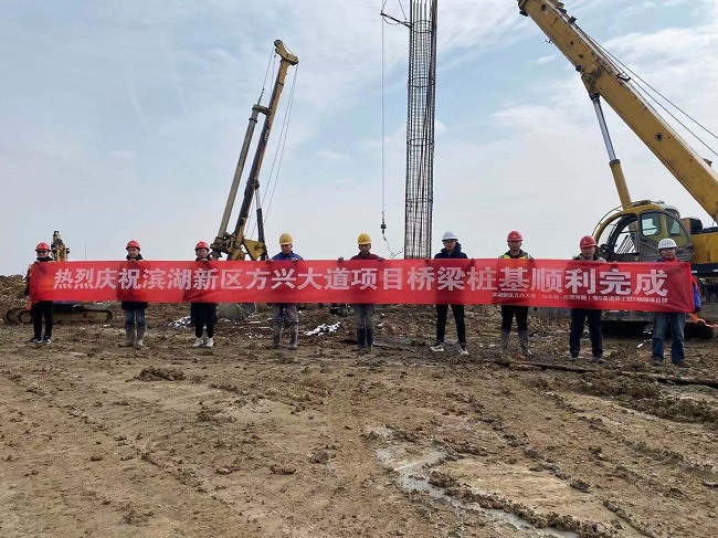 大干四季度,奮力奪全年。2020年12月14日上午,經過數周的連續奮戰,濱湖科學城玉龍路項目方興大道上跨天津路橋120根樁基已全部順利完成。