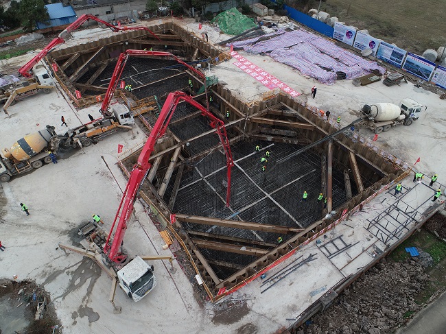 目前,G347安九二期望江PPP項目路基工程已完成。天氣雖寒,人氣不減,參建員工們戰風雨、斗嚴寒,使得楊灣河特大橋和華陽河大橋主體工程進入“熱火朝天”施工階段,安全、質量、進度均處于可控狀態。全體參建員工將以本次承臺澆筑成功為契機,守好安全線,把好質量關,嚴格進行標準化建設,按照時間節點推進重點項目攻堅克難確保如期完成總體任務。