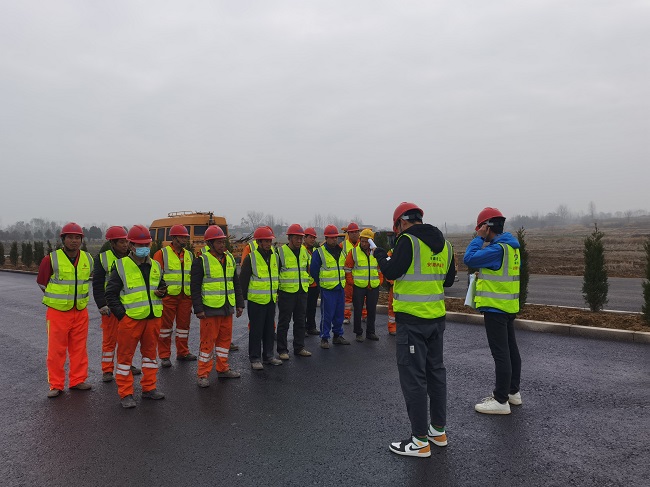 為保證此次試驗段攤鋪順利完成,六安S244項目部召開專題會議進行施工技術(shù)交底和安全技術(shù)交底,對技術(shù)人員、機械操作手開展嚴(yán)格規(guī)范的崗前培訓(xùn)和安全教育,對機械調(diào)配、人員安排、安全環(huán)保等方面進行周密部署。