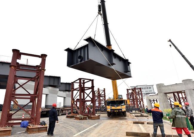 此次主線橋合肥側共30節段鋼箱梁,其中涉蕪合高速部分18節段,計劃4月底全部架設完成。接下來,項目部將加快其余鋼箱梁的架設,在確保安全質量的前提下,高標準、高效率完成各項目標任務。