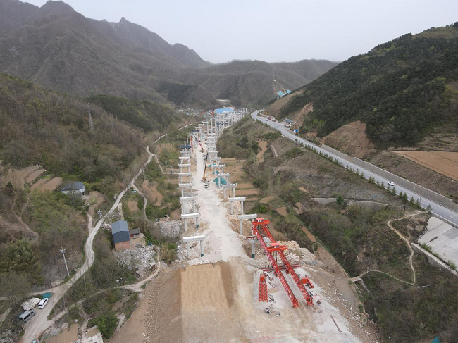 4月16日上午,九溝特大橋順利完成首片梁板架設,成為全線第一個梁板架設標段,標志著項目建設由下部結構施工階段進入上部結構施工的新階段。
