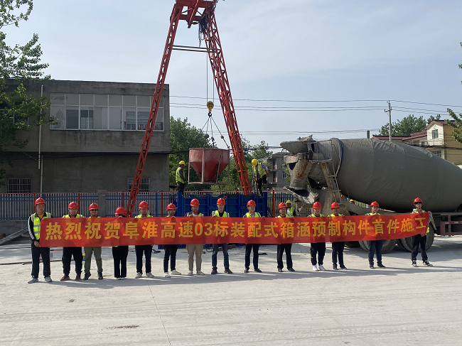 4月27日下午,阜淮高速03標裝配式箱涵預制首件工程在1#預制場成功澆筑,標志著項目建設正式進入實質性施工階段,為項目有序推進奠定良好基礎。