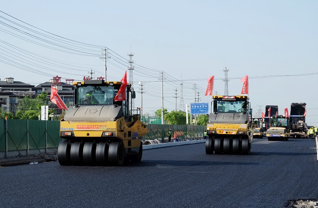 5月8日,繁華大道改造工程項(xiàng)目K1+160-K2+400的施工現(xiàn)場,伴隨著壓路機(jī)緩緩壓過路面,一條平整的瀝青路面如同黑色緞帶,在水穩(wěn)基層上慢慢延展。繁華大道項(xiàng)目瀝青混合料面層攤鋪正式啟動(dòng),為確保10月1日主車道通車目標(biāo)打下堅(jiān)實(shí)的基礎(chǔ)。