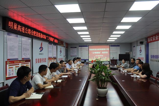 6月3日,明巢高速合肥段項(xiàng)目部召開了黨員先鋒號(hào)、工人先鋒號(hào)、青年文明號(hào)“三號(hào)聯(lián)創(chuàng)”動(dòng)員大會(huì)。四分公司黨總支書記、工會(huì)主席代聲慶主持會(huì)議,項(xiàng)目部成員參加會(huì)議。公司黨委委員、紀(jì)委書記王勝利及黨工部、工會(huì)等人員應(yīng)邀出席會(huì)議。