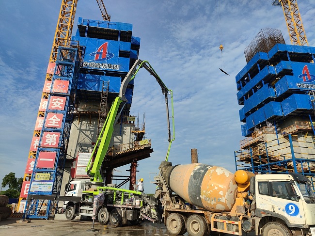 炎炎六月,驕陽似火。G347PPP為積極開展“學黨史、保安康、搶工期、爭一流”勞動競賽,搶抓施工生產(chǎn),跑出工程“加速度”。6月14日,G347PPP楊灣河特大橋14#墩主塔左幅第四節(jié)、15#墩主塔右幅第四節(jié)順利完成澆筑。