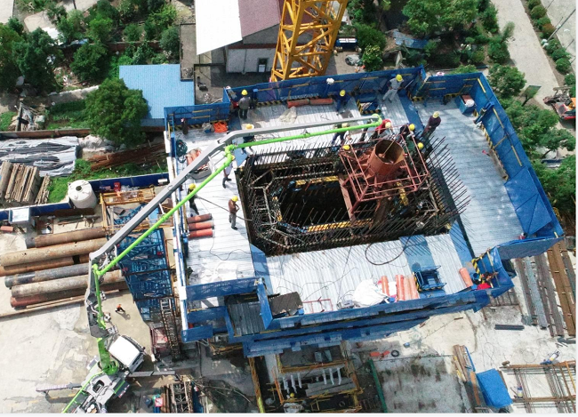 楊灣河特大橋14#墩主塔左幅第四節(jié)頂口高度24m,澆筑方量114方C50混凝土,15#墩主塔右幅第四節(jié),頂口高度24m,澆筑方量113方C50混凝土。為確保該橋的施工進度,項目部組織協(xié)調(diào)分段施工,精心編制施工方案,及時優(yōu)化施工工藝,采用降低水化熱技術不斷交流施工細節(jié)和經(jīng)驗,在確保質(zhì)量的情況下,堅持“快”字當先,及時制定相應措施,確保主塔節(jié)點澆筑成功。