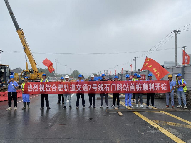 6月28日上午8點18分,合肥市軌道交通7號線一工區石門路站主體圍護樁首樁順利開鉆,標志著該站點正式進入車站主體施工階段。