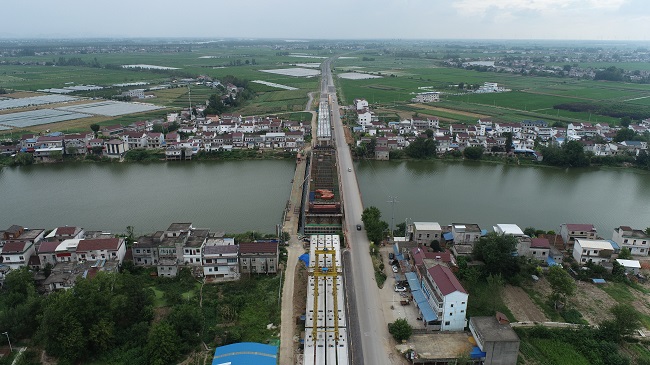 G347PPP華陽(yáng)河大橋引橋箱梁架設(shè)完畢