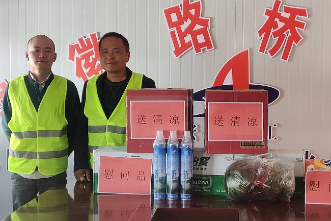 慰問過程中,公司領導詳細詢問關心職工在項目的生活、工作等情況,向作戰(zhàn)在酷暑天氣下卻始終堅守在崗位一線的職工表示感謝,將工會集中購買的藿香正氣液、西瓜、酸奶等防暑降溫用品分發(fā)到職工手中,并叮囑項目結合實際做好防暑降溫、疫情防控工作。