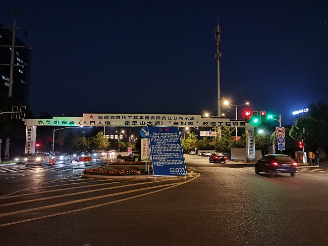 九華路東段(太白大道—霍里山大道)“白加黑”改造工程項目西起太白大道,東至霍里山大道,改造段全長4.416km,實施路面“白加黑”升級改造,配套完善慢行系統、排水管網、綠化等附屬設施。