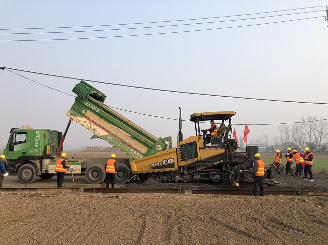 10月27日上午,泗縣黃圩鎮2021年建制村通雙車道公路工程孫黃路第一層水穩正式開始攤鋪,標志著本項目全面進入路面施工階段。