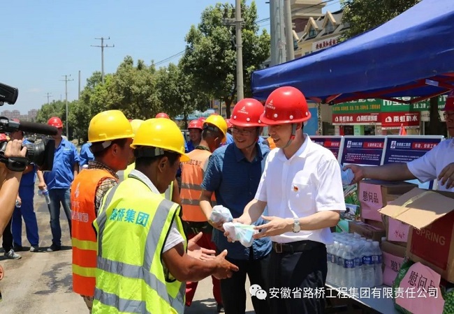 盛董事長向正在作業的職工表達親切關懷與問候,并將綠豆、紅糖、十滴水、風油精、藿香正氣口服液等防暑降溫慰問品親自送到一線職工手中。在慰問調研途中,盛董事長聽取了分公司關于當前工程項目建設、夏季防暑降溫工作開展情況的匯報,詳細了解一線職工的生產生活情況,認真聽取一線職工的意見和建議。就下一階段工作,盛董事長強調:一是加強項目管理,針對夏季施工特點,合理安排施工,確保廣德片區各項目安全可控、進度可控、質量可控,為完成工期目標和年度目標打牢基礎,向集團和廣德縣人民交上一份滿意的答卷。二是切實做好防暑降溫各項工作,項目部要合理安排作息時間,加強后勤保障和應急措施,保證高溫作業條件下一線職工的安全和健康。