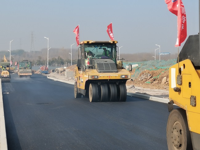 2021年12月23日,經(jīng)過全體參建人員24小時(shí)不間斷的連續(xù)作業(yè),蜀山經(jīng)開區(qū)山茶路項(xiàng)目順利完成迎真路和山茶路下面層瀝青攤鋪工作。