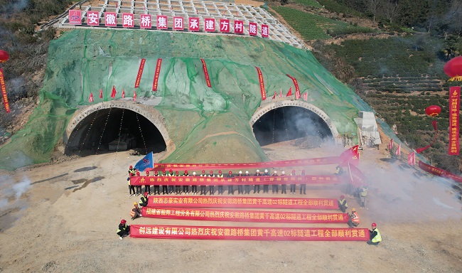 2021年12月29日上午,隨著最后一個(gè)支護(hù)循環(huán)順利完成,黃千高速HQTJ-02標(biāo)最后一座隧道——方村隧道左線順利實(shí)現(xiàn)出洞,標(biāo)志著黃千高速02標(biāo)所有隧道全部貫通。