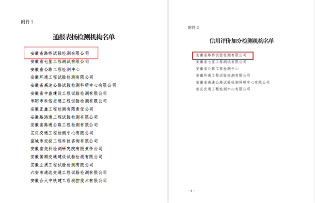 2月8日,安徽省交通運輸廳發布《安徽省交通運輸廳關于2021年度農村公路建設質量“兩服務一培訓”志愿幫扶工作情況的通報》,對檢測公司參與“兩服務一培訓”志愿幫扶工作期間所做出的突出貢獻進行表揚,并給予信用評價加分激勵。