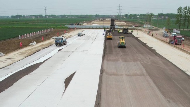 面對項目周邊嚴峻的疫情形勢,蚌埠G206項目部在嚴格落實疫情防控工作各項要求的基礎上,主動與當地政府部門協調,確保了水穩原材料、機械、人員的順利進場。同時,為確保水穩試驗段的順利攤鋪,項目部超前謀劃,精心組織,攤鋪前組織技術人員及一線作業人員召開安全技術交底會,對攤鋪機、壓路機等設備進行全面調試,嚴格控制水穩混合料拌合、運輸、攤鋪、碾壓、檢測等各個環節,確保各道工序順利銜接。