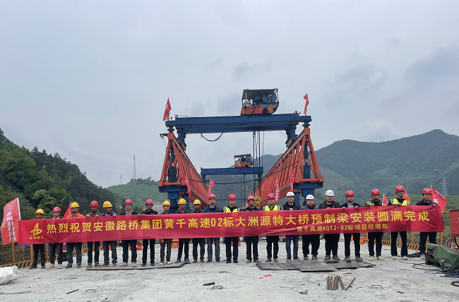 4月18日上午,隨著大洲源特大橋最后一片預(yù)制梁精確就位,黃千高速02標(biāo)武陽互通大洲源特大橋箱梁安裝圓滿完成。