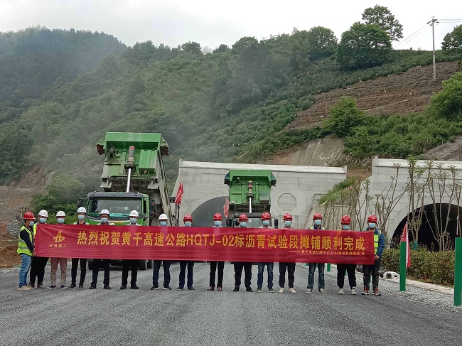 5月11日上午9點08分,伴隨著機器的轟鳴聲,黃千高速02標路面瀝青試驗段攤鋪順利完成,項目全面進入瀝青攤鋪階段,實現了施工工序的大轉換。