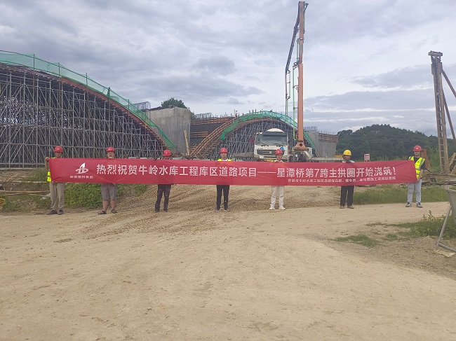 6月12日凌晨2點,牛嶺水庫項目星潭橋第七跨主拱圈順利澆筑完成,橋梁已全面進入橋梁上部結構施工階段。