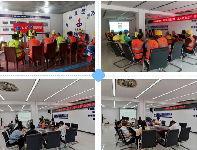 在安全生產月期間,合六葉06標項目在工地顯要位置懸掛和張貼安全生產宣傳橫幅、標語及海報,組織職工觀看《生命重于泰山》電視專題片,有效提升從業人員安全意識,營造安全生產良好氛圍。在“6.16”安全咨詢日當天,項目員工走入社區,向群眾進行安全知識宣傳,同時開展安全月進校活動,向青少年宣傳安全知識,增強青少年的安全意識。