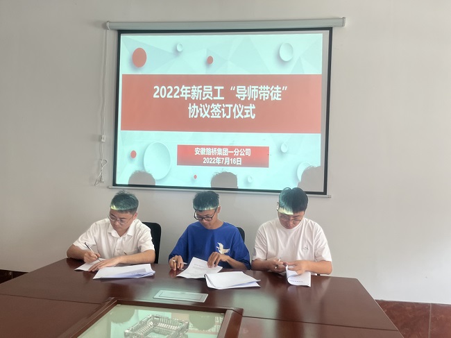 會(huì)上,一分公司總經(jīng)理李文兵代表分公司對(duì)新員工的到來(lái)表示熱烈歡迎,并結(jié)合安徽路橋集團(tuán)宣傳片,對(duì)公司生產(chǎn)經(jīng)營(yíng)、人才建設(shè)、黨群工作等情況進(jìn)行介紹。隨后,新員工逐一進(jìn)行自我介紹,分享入職一周后的感受。項(xiàng)目負(fù)責(zé)人則圍繞自身的成長(zhǎng)歷程,闡述項(xiàng)目工作和生活方面的收獲和感悟。會(huì)上,在參會(huì)人員集體見證下,五位新員工分別與專業(yè)導(dǎo)師和成長(zhǎng)導(dǎo)師順利完成師帶徒簽約。