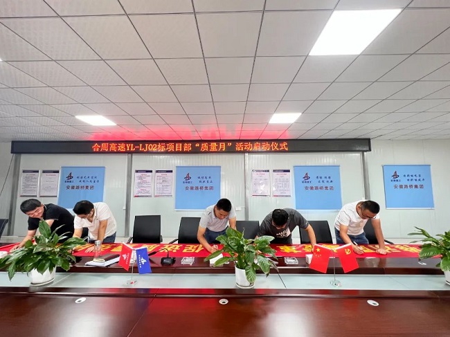 9月1日至9月8日,分公司所屬各項目先后舉行“質量月”啟動儀式。項目負責人號召員工認真落實上級黨組織、公司關于質量工作的決策部署及要求,開展項目班子講質量環節,進一步明確各級質量管理責任和工作內容,結合項目實際情況安排質量管控重點工作。同時,各項目通過條幅、標語等方式廣泛開展宣傳活動,切實提高全員質量意識,為項目質量管理營造濃厚氛圍。